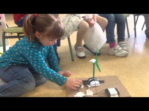 Candela explicounos o circuito que preparou na casa:cómo vai un "bichiño" circulando dende a pila ata o ventilador...